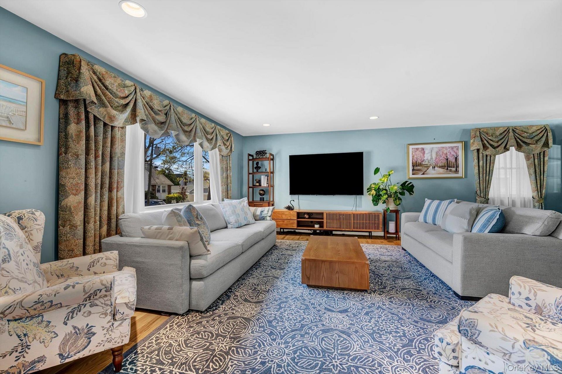 Welcome to this timeless elegance and exquisite Colonial in one of Merrick's most desirable neighborhoods, this exceptional Residence offers privacy, scale, and refined living at every turn. Step into the entry welcomes you into sun-filled interiors featuring Generous Living spaces rich hardwood floors and thoughtfully designed spaces ideal for both everyday living and elegant entertaining. The expansive gourmet kitchen with S/S appliances, granite countertops, & custom cabinetry opens seamlessly to a warm family room. The cathedral ceiling upper level features a luxurious primary suite with a spa-like bathroom, separate shower, & walk-in closet. Along with 2 generously sized bedrooms and full size bathroom. All bedrooms are enhanced with custom built-ins closets. Basement offers large family room -creating a perfect retreat for relaxation and recreation. Additional highlights central air conditioning, gas heat, custom outdoor Kitchen integrated grills and smart lighting, a two-car garage, and driveway parking for up to four vehicles. Relax on the charming front porch or enjoy the beautifully landscaped and Decked Yard, ideal for outdoor gatherings! It is a rare opportunity to own a distinguished home offering exceptional space, comfort, and lifestyle in Merrick.
